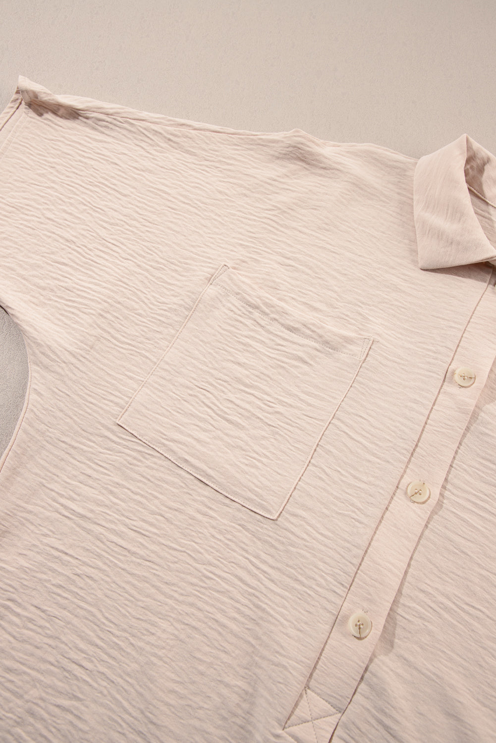 - It has button closures, turn-down collar, and short sleeves