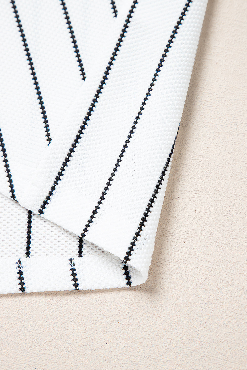 Black Stripe Chevron Striped V Neck Long Sleeve Casual Top