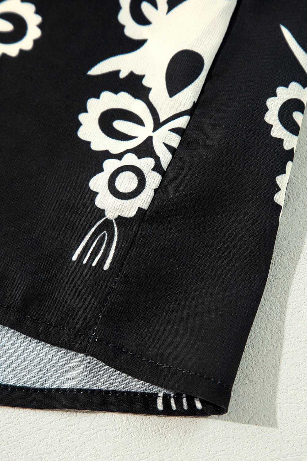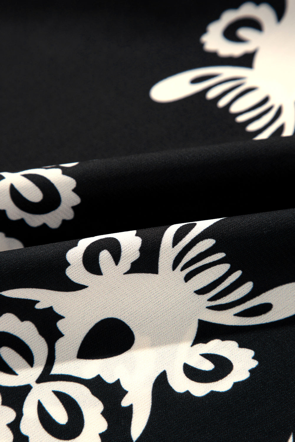 Black Vintage Geometric Printed 3/4 Sleeve V Neck Blouse