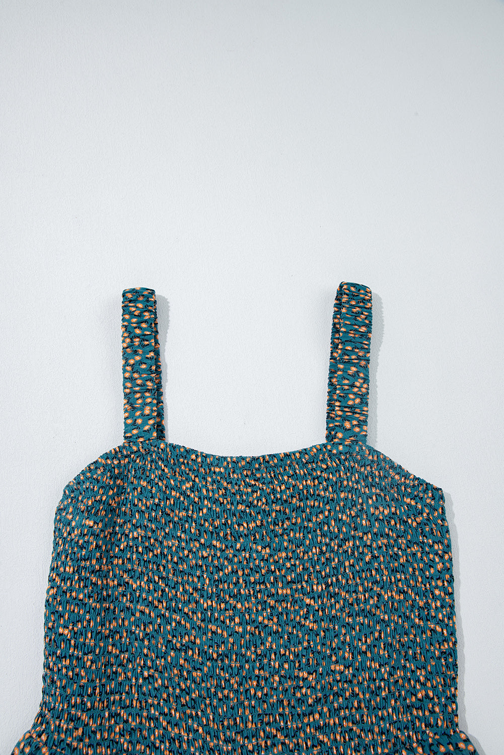 Green Floral Print Smocked High Waist Square Neck Jumpsuit