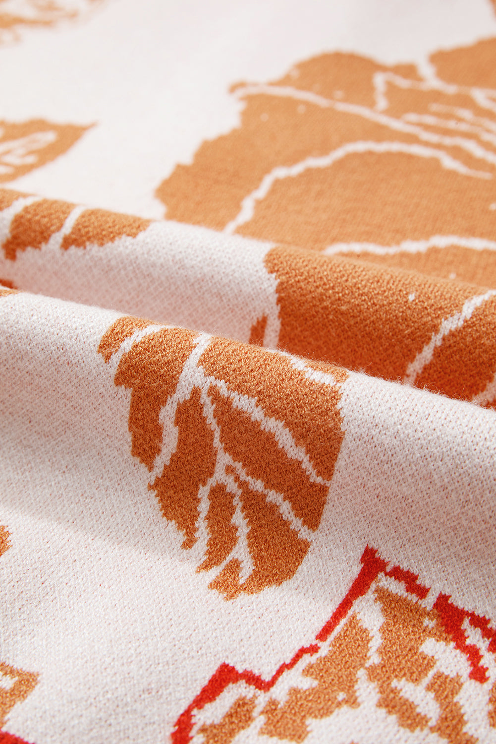 Made with a flower print knit, features a collared neck and drop shoulders.