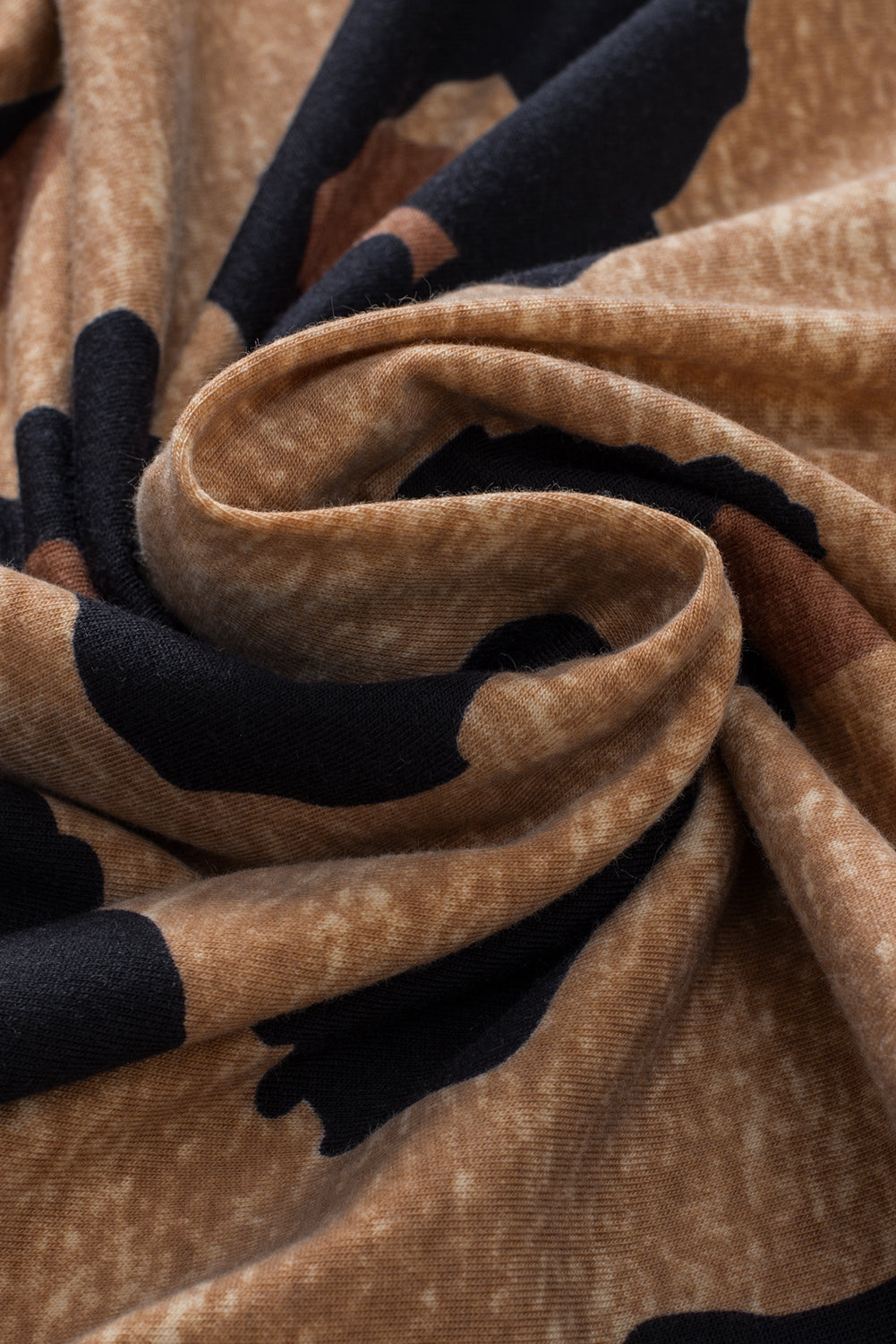 Light French Beige Leopard Folded Short Sleeve Buttoned V Neck T Shirt