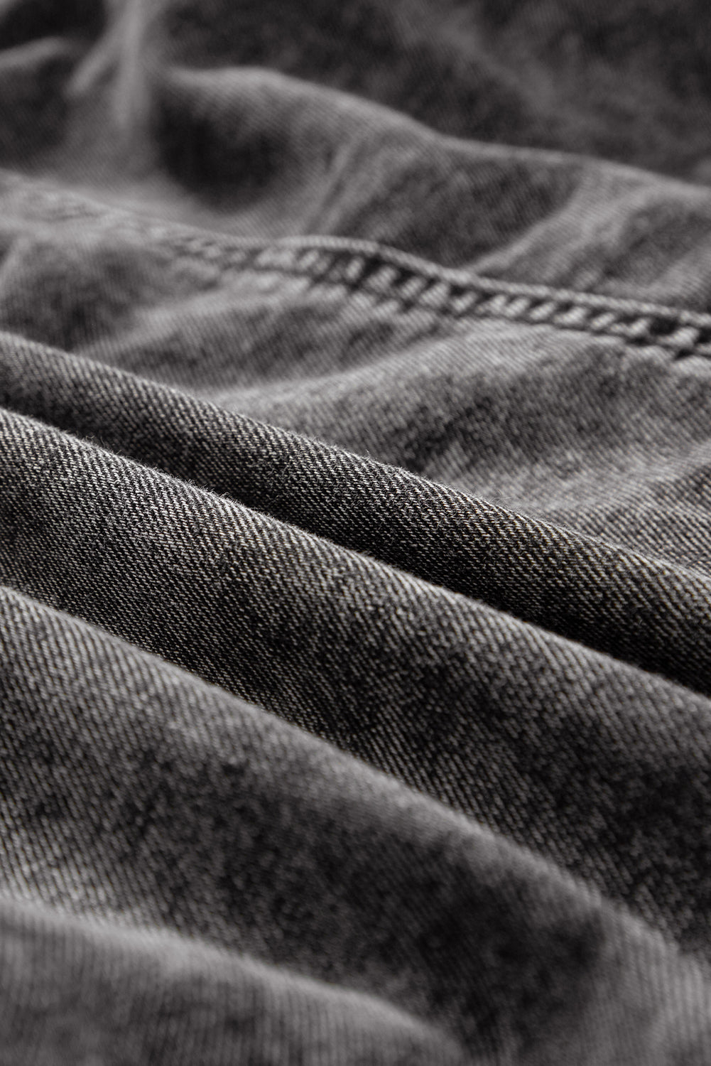 Medium Grey Mineral Wash Ruffled Short Sleeve Buttoned Denim Dress