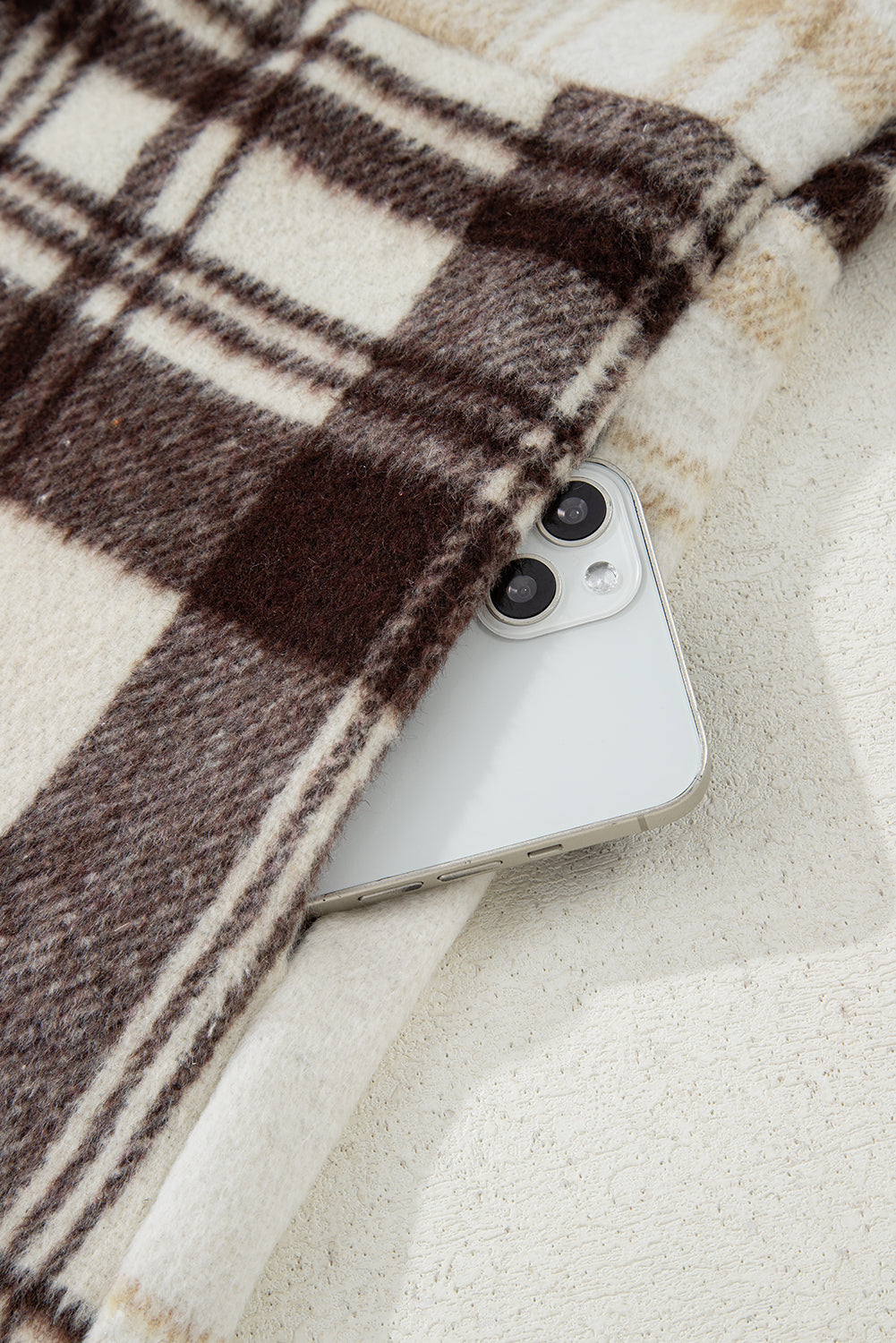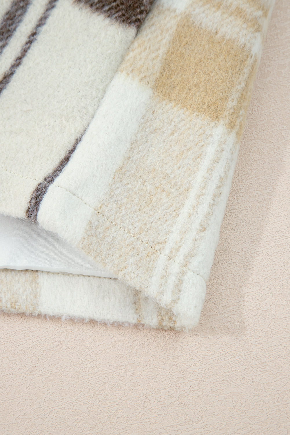 Multicolour Plaid Patchwork Side Pockets Buttoned Shacket