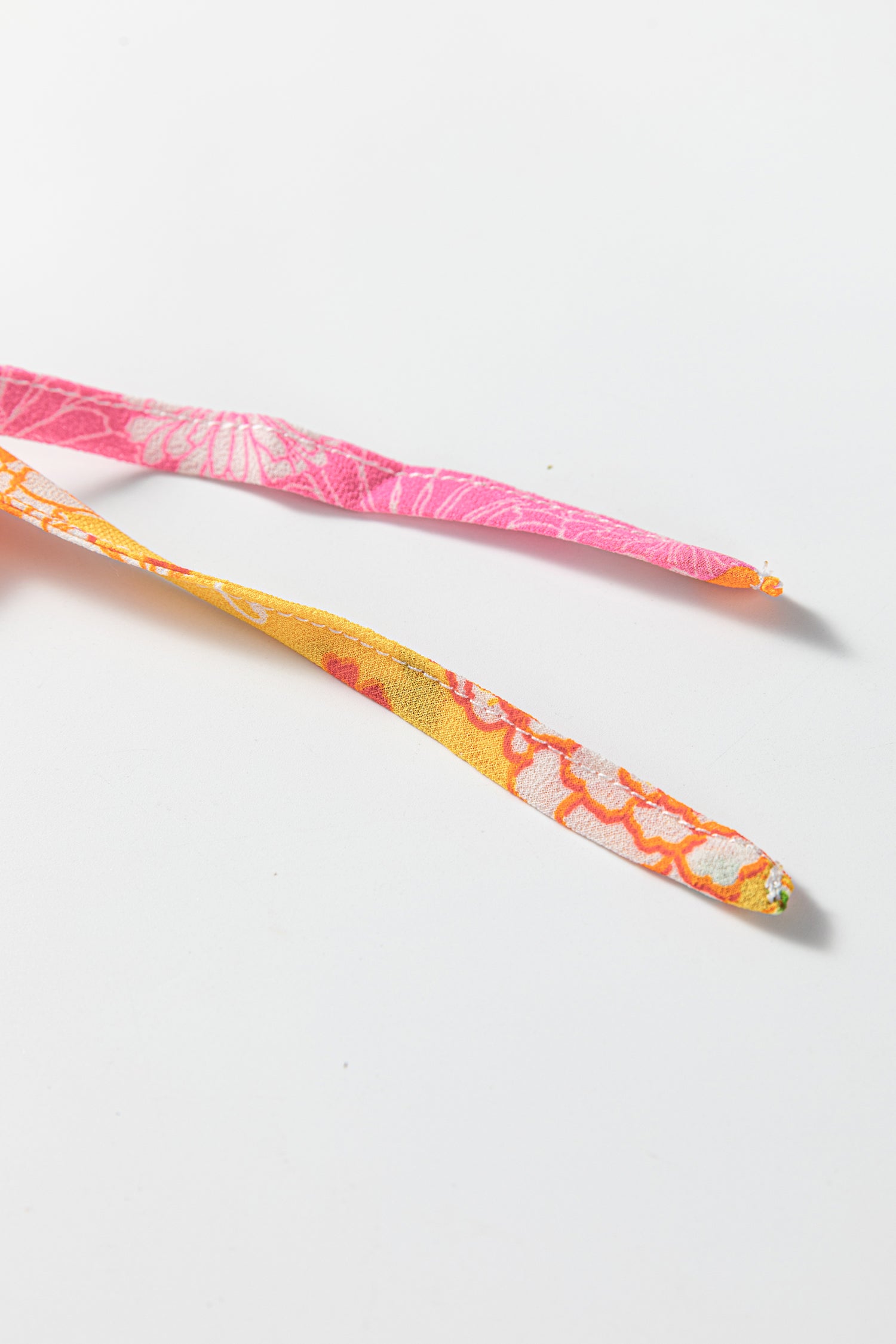 Orange Floral Patchwork Print Cut out Tied Back Bracelet Sleeve Maxi Dress