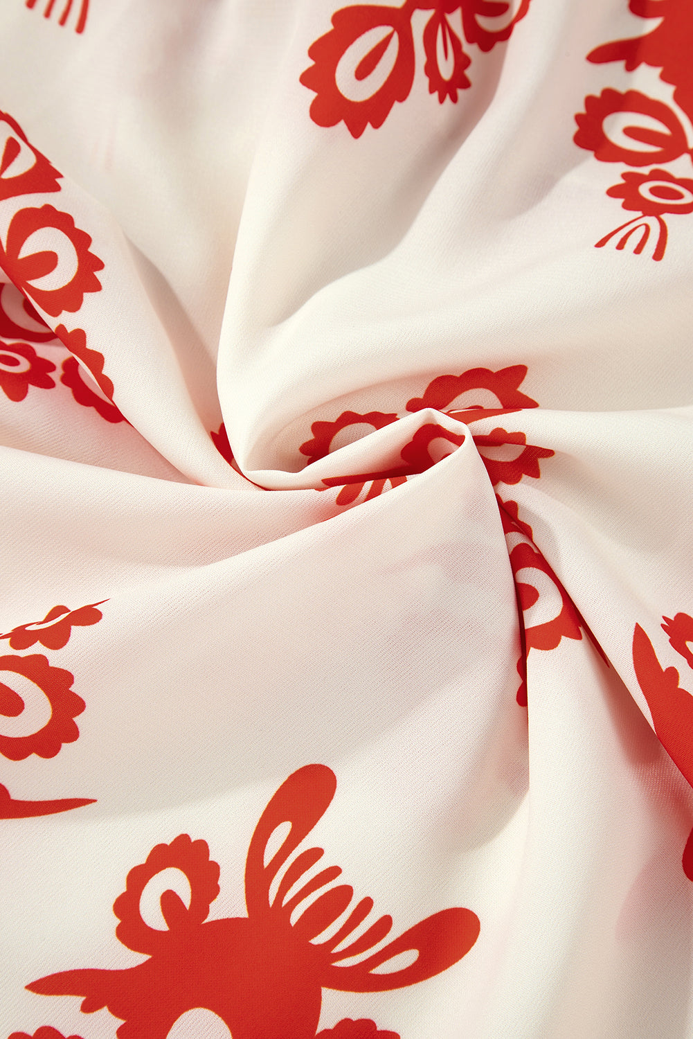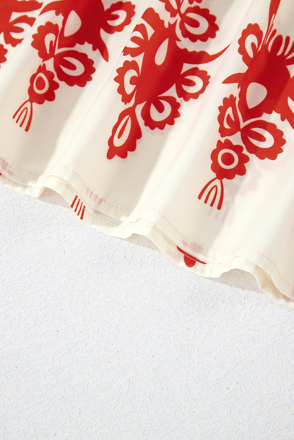 Orange Vintage Geometric Printed 3/4 Sleeve V Neck Blouse