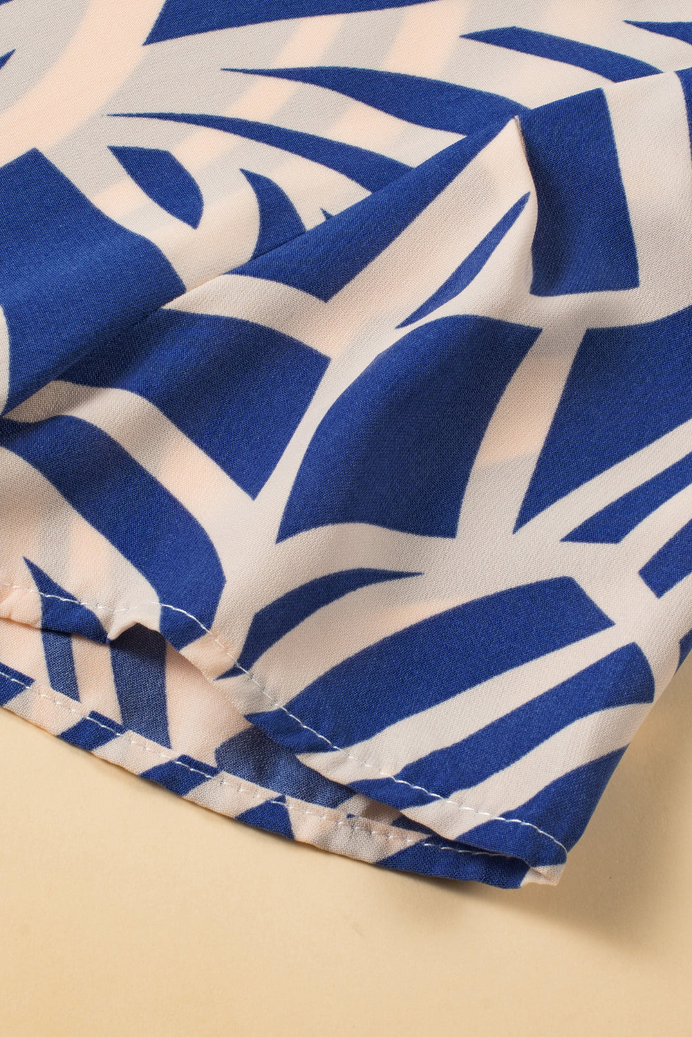 Sky Blue Boho Printed Short Sleeve Flare Tiered Dress