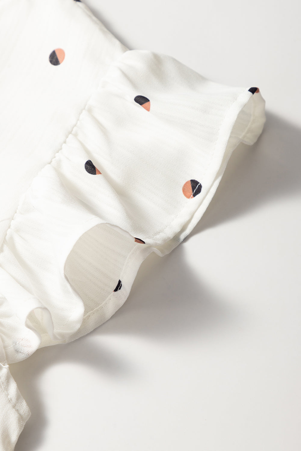 White Polka Dot Print Ruffled Shoulder V Neck Tank Top
